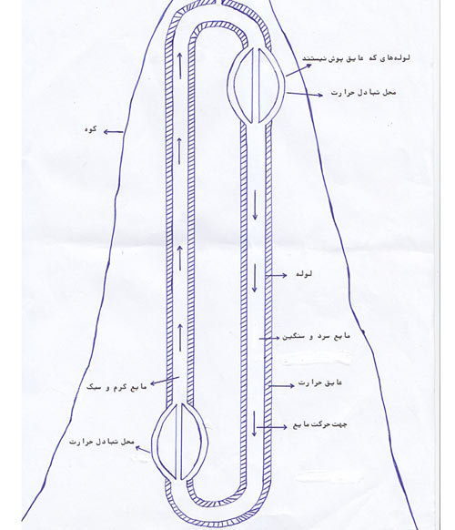 ۱ دو لوله عایق پوش شده ، باید در بالا و پایین کوه ، به شبکه ای از لوله های نازکتر که عایق پوش شده نیستند ، منشعب بشوند تا تبادل حرارت ، در سریعترین زمان ممکن صورت پذیرد .